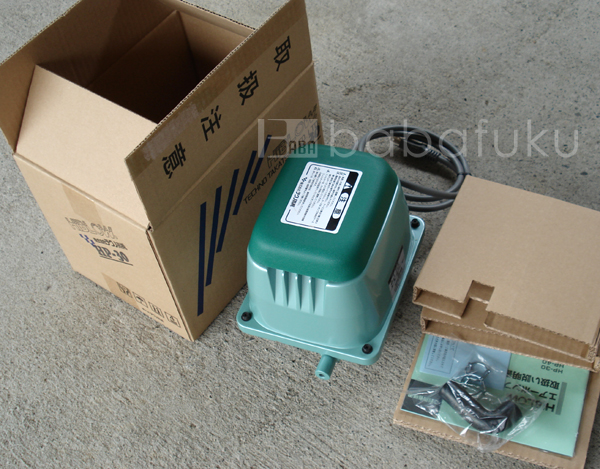 色はグリーンで、標準的な大きさです。  蓋の上には使用上の注意点等が記載されています。  吐出口の内径が小さく厚みがあるので、音を静かに抑えられます。  弊社で独自に各ブロアーに適合した「取り付け部品付き」を無料添付させて 頂いておりますので、商品が到着した日から設置してご使用頂けます。 取り付け方が分からない場合はサポートしますのでご連絡下さい。  万が一、不具合で回収する等のトラブルが発生しても問題ないように、 お客様の購入品番を独自に保存して保証書カードを発行させて頂いております。  丈夫なつくりですが、ブロアーの蓋は簡単に取り外しできます。ご購入の際はサイズをお確かめ下さい。  こちらの商品は通常の半額以下で消臭剤をお付けしたセット商品になります。 消臭剤ミタゲンは浄化槽内の微生物の働きを助け嫌な臭いを元から改善します。 | 電圧(V) | AC100V | 周波数(Hz) | 50/60Hz | | 吐出口径(cm) | φ1.8(VP1.3) | 風量(L/min) | 120L/min | | サイズ(cm) | 横25.6 縦20.0 高さ22.2 | 重量(kg) | 8.5kg | | 常用圧力 | 17.7kPa | | | 弊社でのご購入メリットブロアー等の浄化槽用品は購入までの時間より、購入後の時間の方が長く、 すぐに機能しなくなってしまっては意味がありません。 浄化槽管理暦35年以上のプロの選んだ取り付け部品、独自保証システム、さらに 1万円以上ご購入頂いたお客様には「浄化槽コミュニティ」へご招待させて頂いてます。