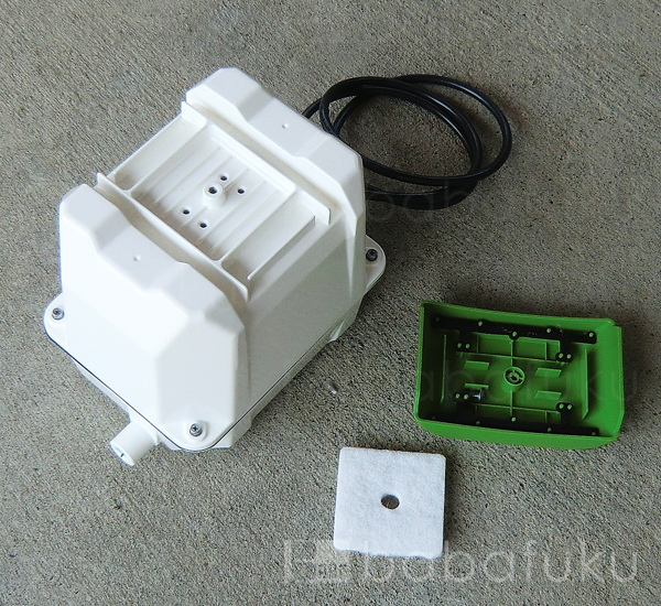 大晃TKO-200は積水(セキスイ)、前澤、大栄産業等の様々な浄化槽で使われている ![]() 風量200のタイプに買い替えられる際は現在のタイプが風量200の場合のみにして下さい。 ![]() 色はグリーンと白に近いライトグレーです。 吐出口の位置が右側にあります。同メーカーの大晃JDK30~40と位置が異なります。 上からの図です。ブロアーのフタの部分はネジ式になっております。 ブロアーの後ろに注意事項等が記載されております。 同じメーカーの大晃JDK-60~120に比べ一回り大きいサイズになります。 ブロアーのフタの内部にフィルターが入ってます。 リリーフバルブは標準で付いてきます。リリーフバルブとは ブロアーを開封した際に一度、取り扱い説明書に目を通して下さい。 弊社で独自に各ブロアーに適合した「取り付け部品付き」を無料添付させて ![]() 万が一、不具合で回収する等のトラブルが発生しても問題ないように、 オレンジの部分が大晃TKO-200の仕様や性能曲線になります。 単位はmmになります。ご購入の際はブロアーと設置場所のサイズをお確かめ下さい。 ![]() こちらの商品は通常の半額以下で消臭剤をお付けしたセット商品になります。